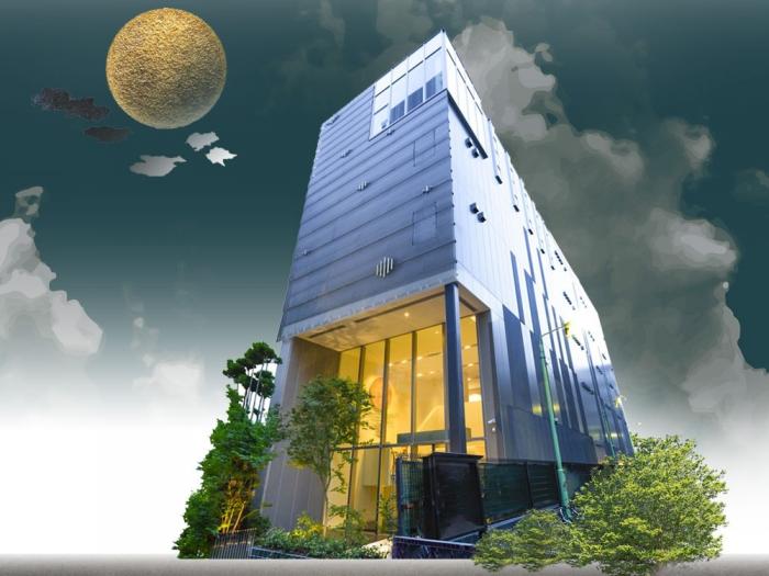 廟庭内は1階から5階まで、月のオブジェに優しく照らされており、自然に包まれているような落ち着ける空間となっております。