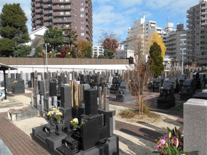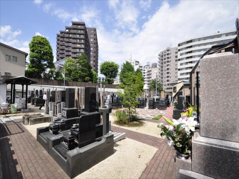 大きな木々に囲まれ、新宿区とは思えないほど静かで、緑豊かな陽当たりの良い霊園です。