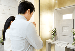 東京の浅草・上野エリアの4路線の駅が利用可能な自動搬送式納骨堂。マンションタイプでありながら木のぬくもりを感じる室内墓です。