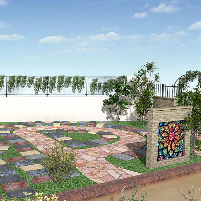 ステンドグラスとレンガの美しいガーデン風墓所 |
