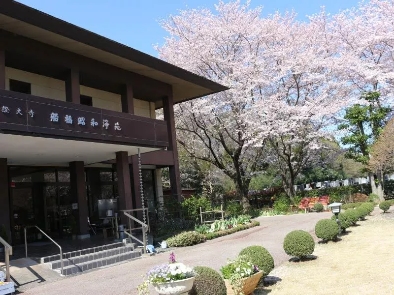 船橋昭和浄苑は、船橋市の名刹 證大寺 が運営する、宗旨・宗派不問の安心できる霊園です。北総鉄道「小室駅」、東葉高速鉄道「北習志野駅」、JR線「船橋駅」、新京成線「三咲駅」よりバス利用が便利で、船橋昭和浄苑の目の前に『證大寺昭和浄苑』バス停があります。船橋昭和浄苑は船橋県民の森に隣接しており、美しい景観と素晴らしい環境を誇る、船橋市を代表する大規模霊園で、手紙処、法要・会食施設を完備した近隣随一の広さの管理棟といった施設面の充実もポイントです。