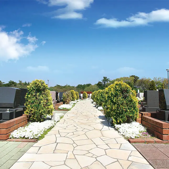 ご好評により完売しておりました「西洋風庭園墓地 風の杜」に、永代供養付で承継の心配がいらない「湘南庭苑」が誕生しました。新湘南バイパス「藤沢インター」から車で約3分、神奈中バス「有藤バス停」から徒歩で約7分とアクセス抜群で、モダンなデザインの管理棟をはじめ、園内中央の噴水や石畳の参道、美しい植栽は洋風の公園を彷彿とさせる霊園です。愛するペットも一緒に、ご家族で6霊以上でも使用できる永代供養付墓地です。