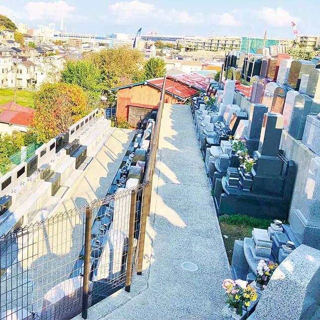 小高い丘の上から東京湾の海、活気があふれる磯子港を一望でき、晴れた日は遠く横須賀三浦半島も望める見晴らしの良い墓所です。