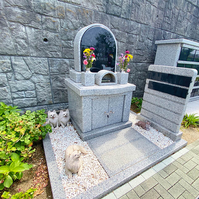 低価格な合祀墓、お骨壺のまま収蔵可能な単独埋葬施設、ペット用の合祀墓もございます。