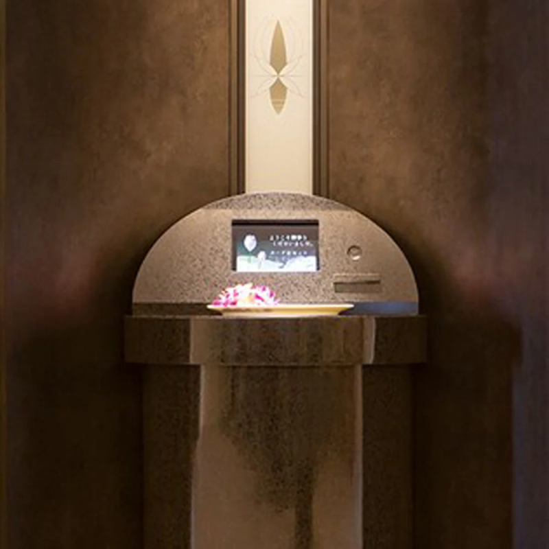 棚式やロッカー式ではなく、最新の自動搬送式を採用しておりますので、 明るく、清潔な空間で、個人と向き合ってゆっくりと参拝していただくことが可能です。