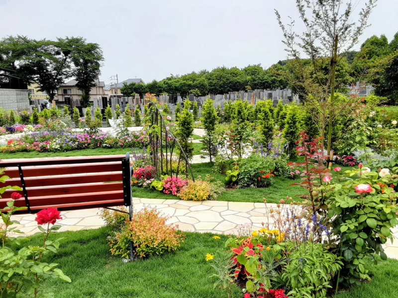 「愛」と「美」が花言葉のバラと四季の花々に彩られ、妙福寺の境内環境との共生を考えた理想の墓地です。