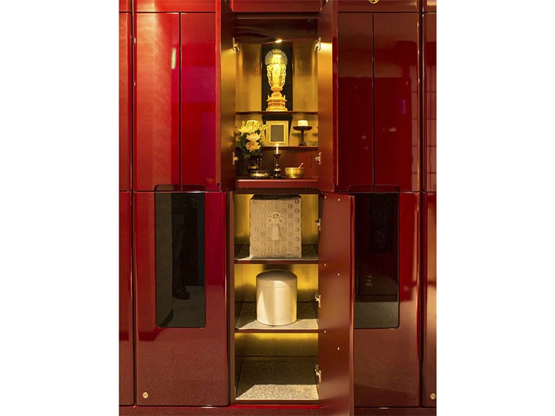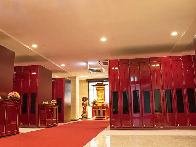 赤く塗られている納骨堂は、気品あふれる空間を演出しています。