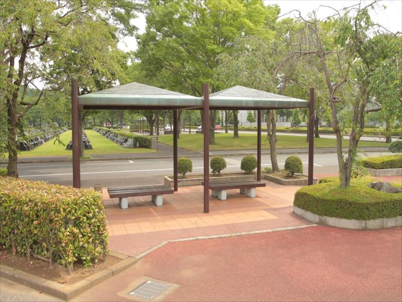 周辺住民の方が散歩やマラソンなどに訪れる歩道とあずまや |