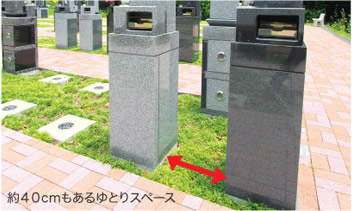 隣のお墓との間に設けた常緑のゆとりスペースは約40cm!余裕で人が通れます。 |