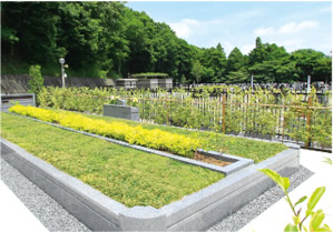 メモリアルパーク厚木ふるさとの丘のお墓は未来区「新緑地付墓所」と故郷区「一般墓所」の2スタイルから選べ、全区画ゆとり仕様。とりわけ未来区「新緑地付墓所」は隣のお墓との間に大きなスペースを設け先進的な工夫をこらしたお墓で、他の霊園にはないスタイルと高いデザイン性で好評を博しています。 |