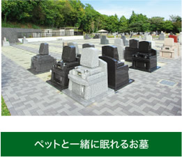 | ペットへの手厚い供養を…という想いにお応えできる、ペット専用のお墓をご用意しました。 | 長年連れ添い、共に過ごしてきた大切な家族の一員ペットと一緒に眠れる区画がございます。※一部区画に限ります。 |
